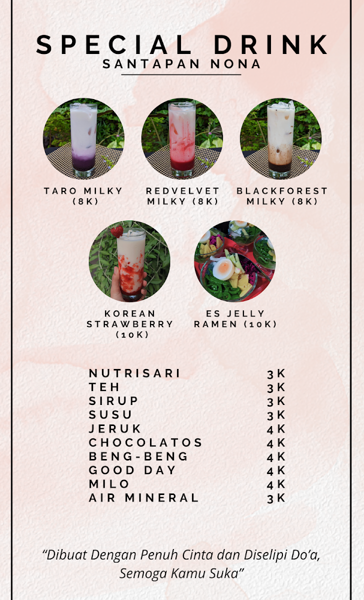 Welcome to Kedai Santapan Nona, a hidden gem located in the heart of Jerukwangi, Jepara. This casual eatery offers a delightful array of Indonesian comfort food that promises to satisfy any palate without breaking the bank. The highlight of the menu is the Mix Platter of assorted fried sausages at just IDR 10,000, perfect for sharing or a personal treat.